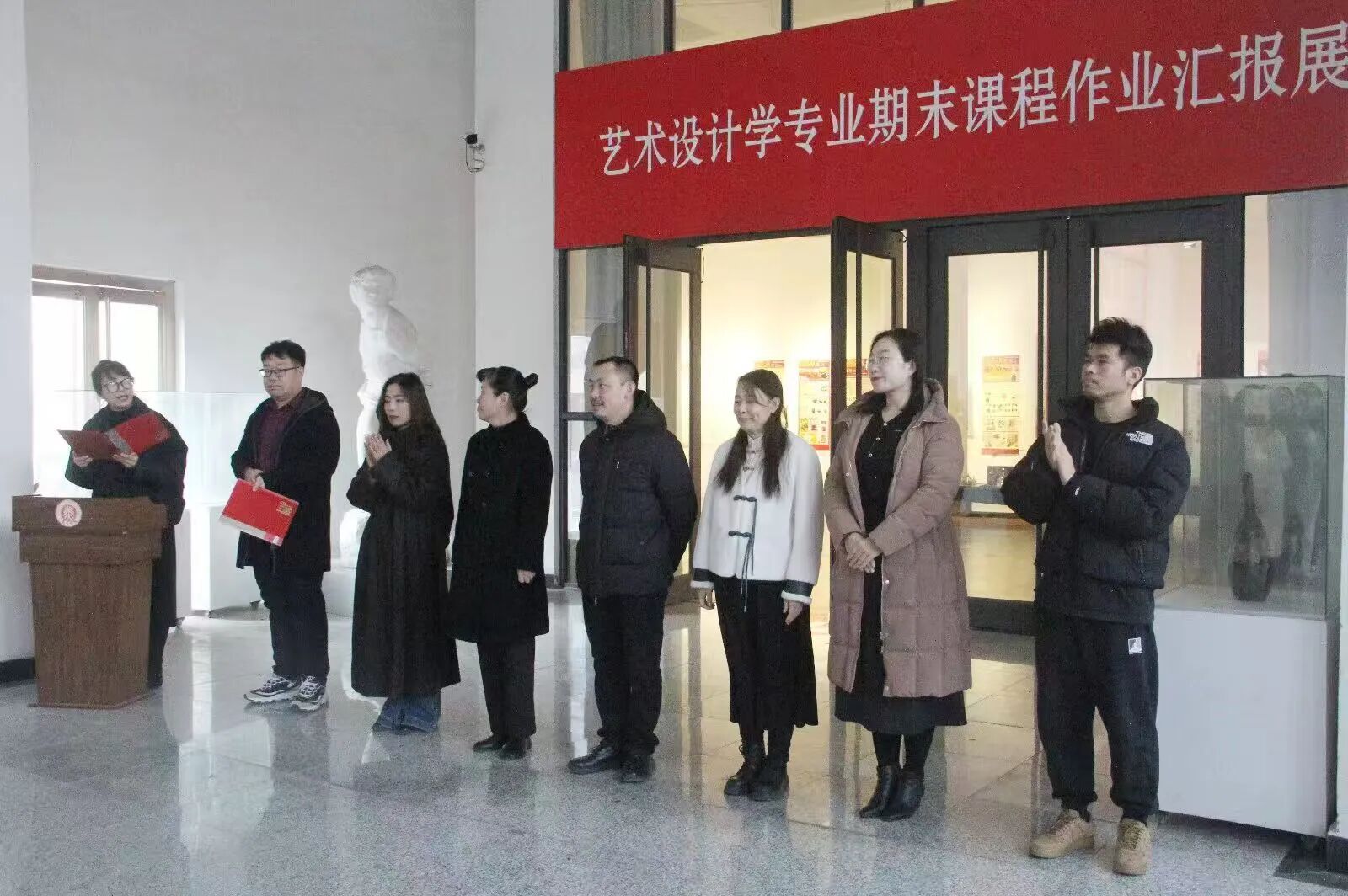 为检验教学成果、展示专业学习成效,深化课程教学与实践创作的融合,12月30日下午,沧州师范学院美术学院艺术设计学期末课程作业汇报展于洪昌美术馆正式举办。美术学院党总支书记吴春霞、院长王通、艺术设计学教研室主任李洪玮以及多位教师代表出席开幕仪式。