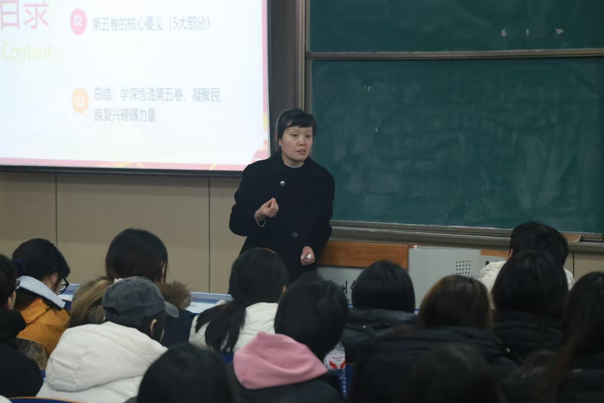 为深入学习贯彻习近平新时代中国特色社会主义思想,厚植理论素养,赋能成长规划,美术学院于12月5日在于志伟艺术楼二阶梯教室开展《习近平谈治国理政》第五卷专题学习。本次学习由吴春霞老师担任主讲,以理论内涵解读、个人发展规划、时代使命担当为核心内容,美术学院马克思主义学习小组成员全程参与。
