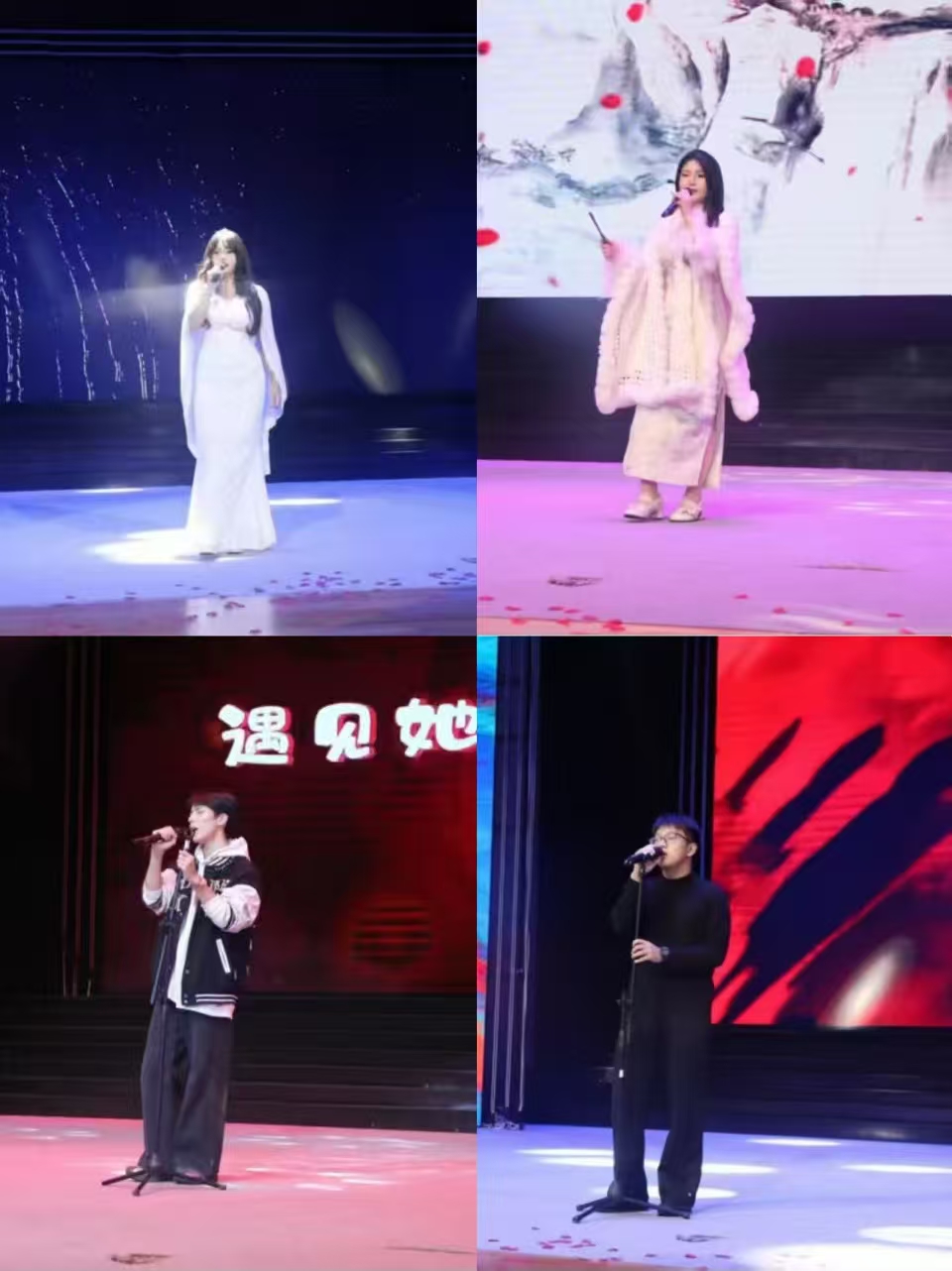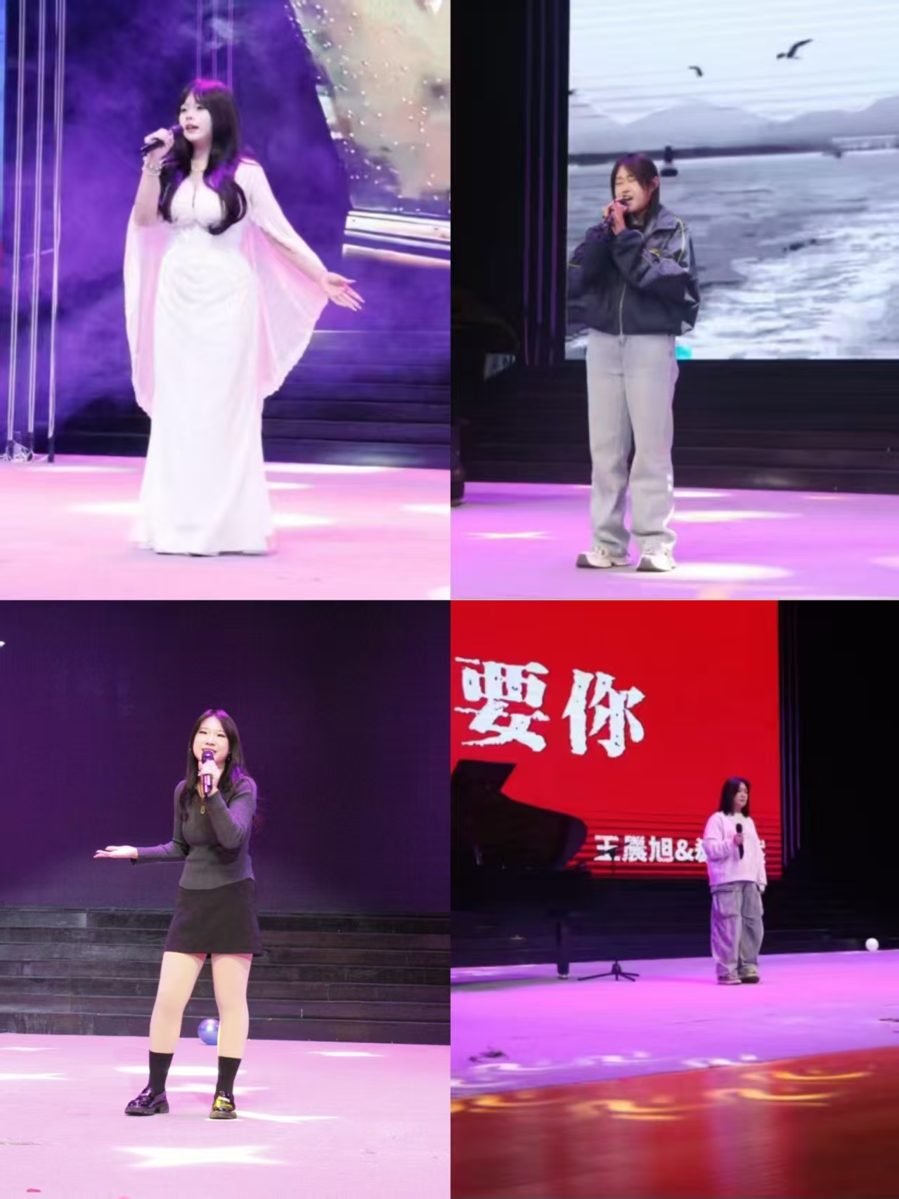 晚会在青春澎湃、活力飞扬的开场舞中启幕,歌唱类节目精彩纷呈:《至少还有你》定格陪伴温暖,《梦一场》道尽青春释然,《怎么说我不爱你》点燃热烈氛围,《怪咖》诠释个性态度,《April Encounter》(当我飞奔向你)勾勒青涩情愫,《错的人》唱出爱里洒脱,《杀死那个石家庄人》回望时代印记,《牵丝戏》融合传统与流行,《嘉宾》《泡沫》《我要你》或诉遗憾或抒情怀,《天下》彰显少年家国情怀,直击人心。舞蹈类活力四射:礼仪部《走秀》尽显优雅自信,大学生舞蹈协会《舞蹈串烧》以多元舞风、动感舞姿点燃热情,掀起阵阵掌声。语言类笑点与温情兼具,《抢婚吧 哥们儿》凭诙谐剧情、鲜活表演聚焦青春百态,传递真挚情感,引发全场共鸣。晚会最后,学院书记、院长与老师们携手唱响《明天会更好》,满含期许与祝福。