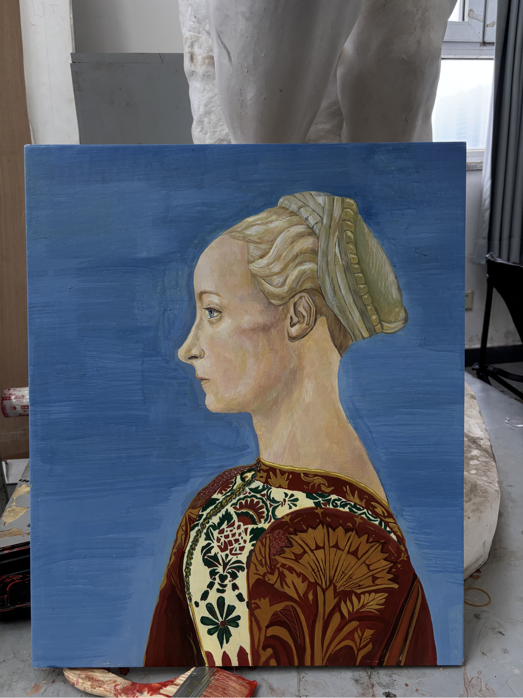 当代艺术市场中,快餐式创作、同质化表达较为普遍,许多作品追求视觉冲击却缺乏工艺深度与文化厚度。坦培拉技法的独特性恰恰能填补这一空白:其制作流程严谨繁复,从画板制作、底料涂抹到颜料调和、分层罩染,每一步都需要创作者的耐心与专注,最终作品兼具古典韵味与材质美感,与现代绘画形成鲜明互补。工作室的成立,不仅为热爱传统技法的创作者提供了专业创作空间,更能吸引当代艺术家跨界尝试—— 将坦培拉的工艺特性与现代观念、多元题材结合,催生出 “古典技法+当代表达” 的创新作品,为艺术市场注入新的活力,丰富公众对绘画艺术的认知维度,让艺术生态在传统与现代的碰撞中更加多元包容。